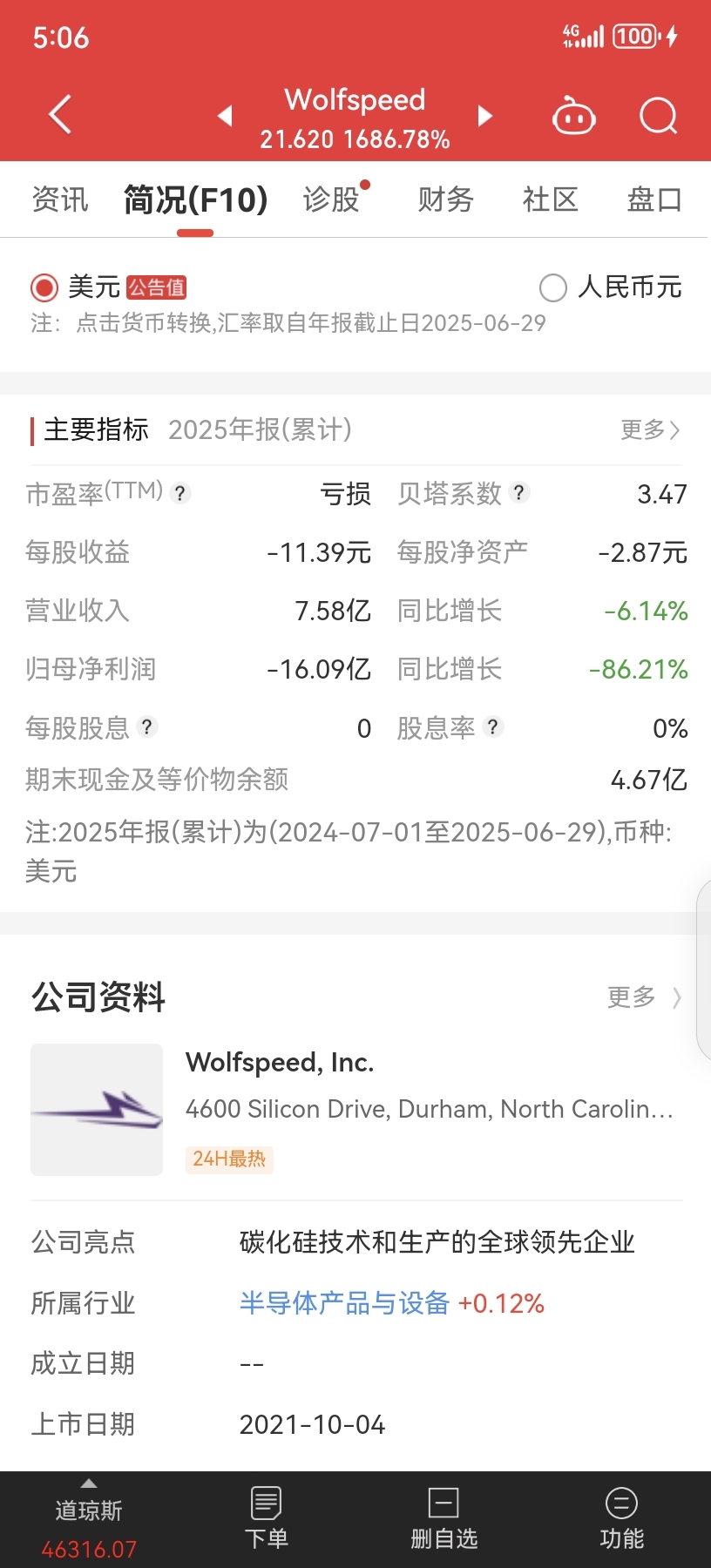 活久见,隔夜美股碳化硅龙头Wolfspeed因购入碳化硅资产飚涨1686.78%