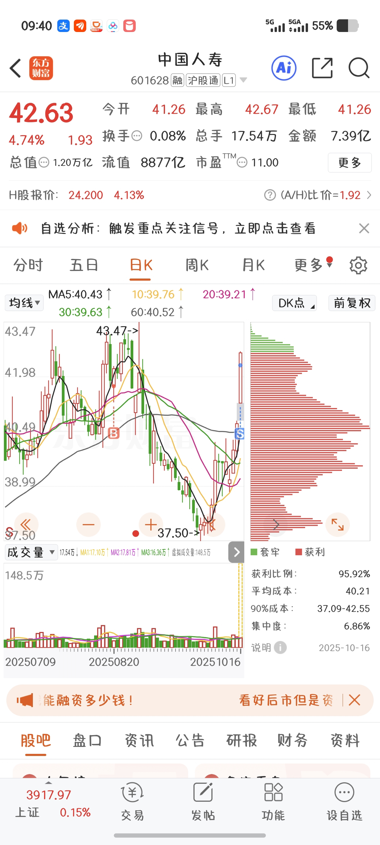 $中国人寿(SH601628)$ 终于回本了8.20号买的,2个月也是让我回本了