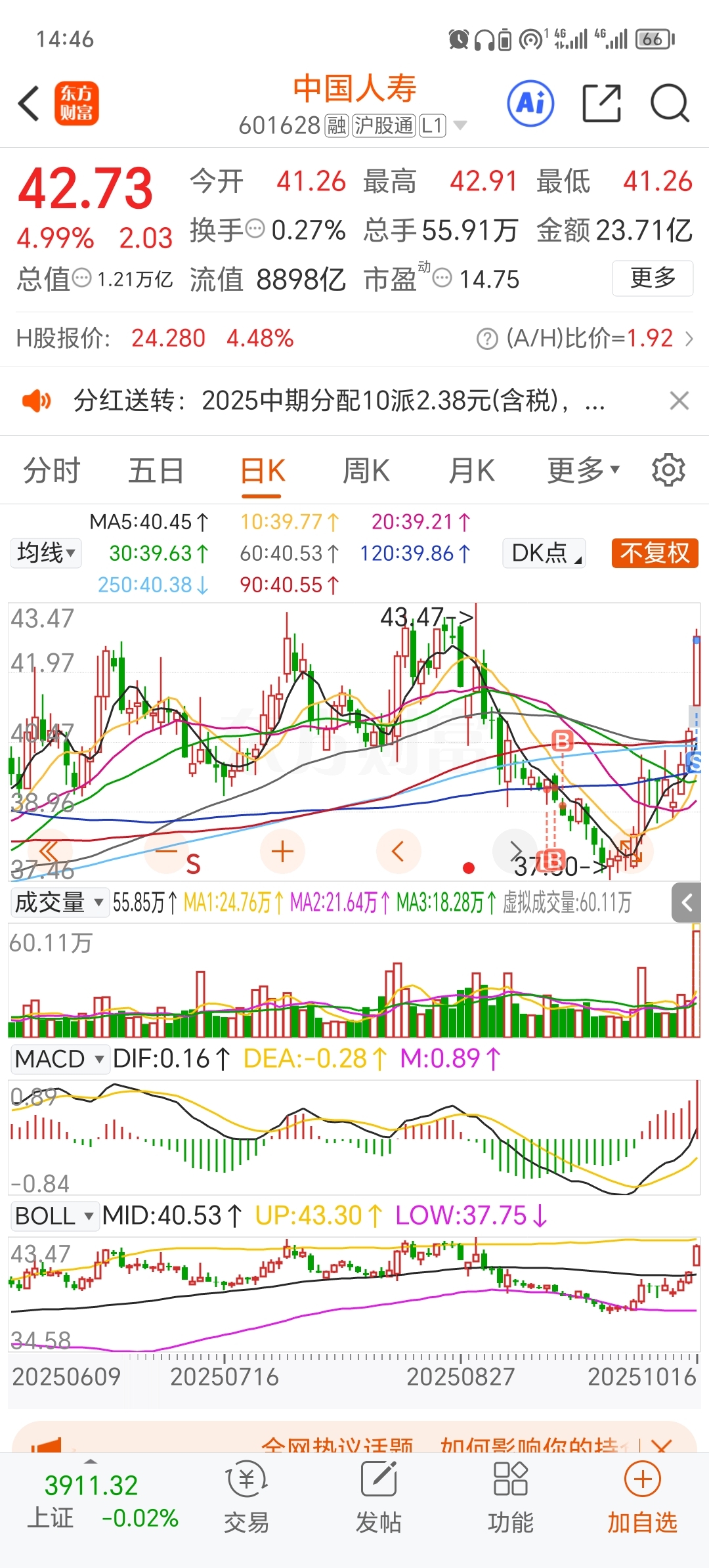 $中国人寿(SH601628)$ 爆量了,等回调再来!