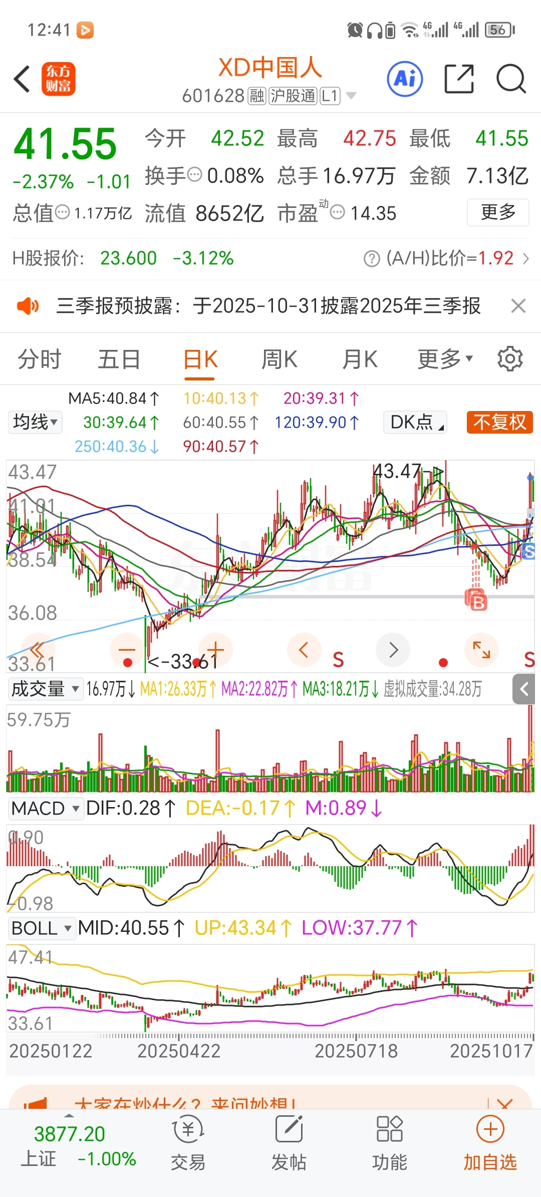 $XD中国人(SH601628)$ 我就说嘛!要敢买敢卖!