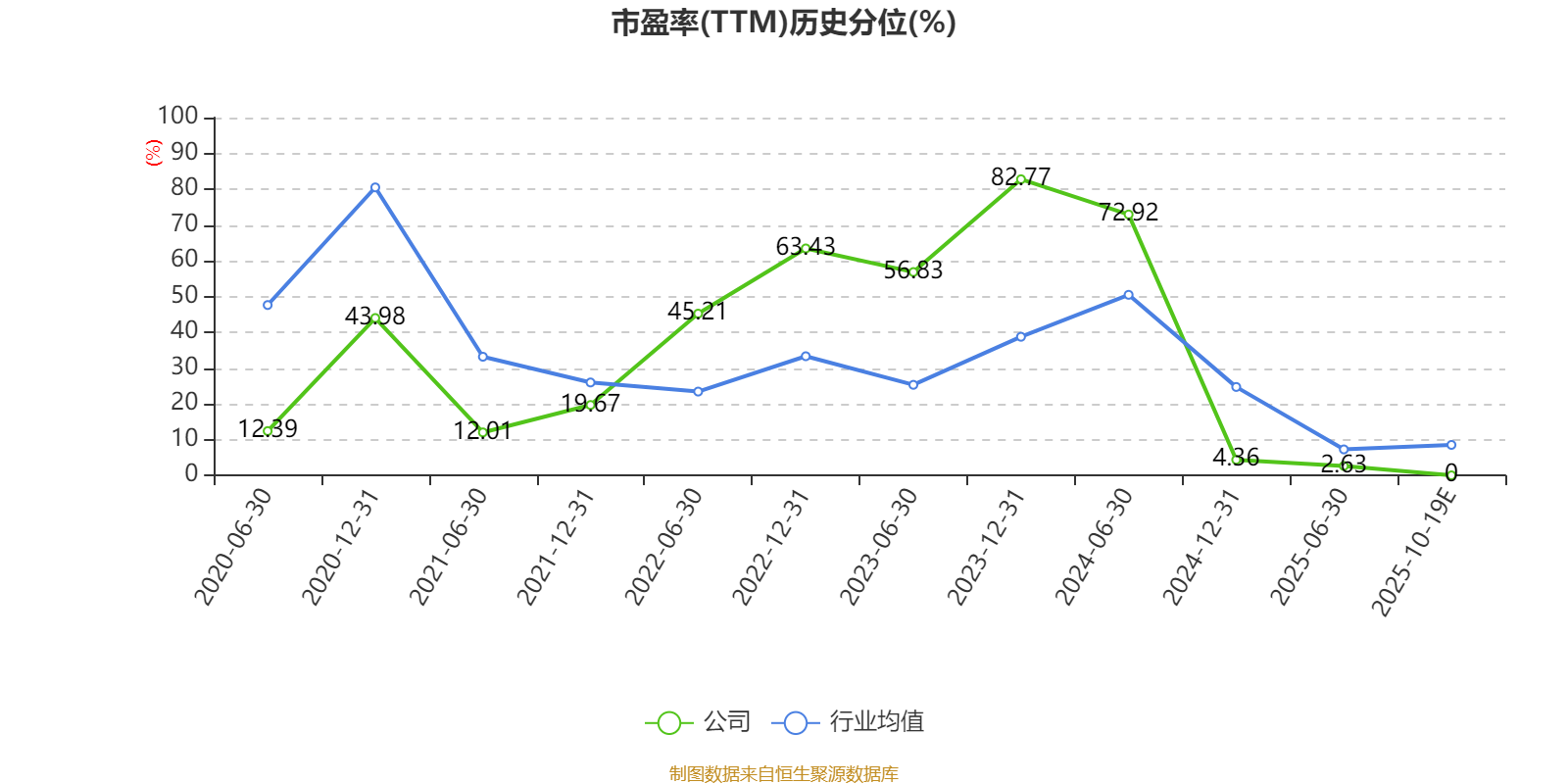 市盈率、市净率为负时,不显示当期分位数,会导致折线图中断。