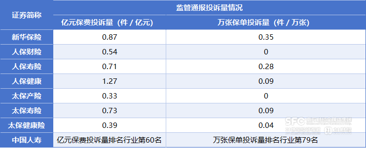 万张保单投诉量的分化更为突出:人保寿险的该指标为0,太保健康、人保健康分别以0.04件/万张、0.09件/万张处于较低区间;新华保险的万张保单投诉量达到0.35件/万张,是当前统计主体中该指标相对突出的主体。