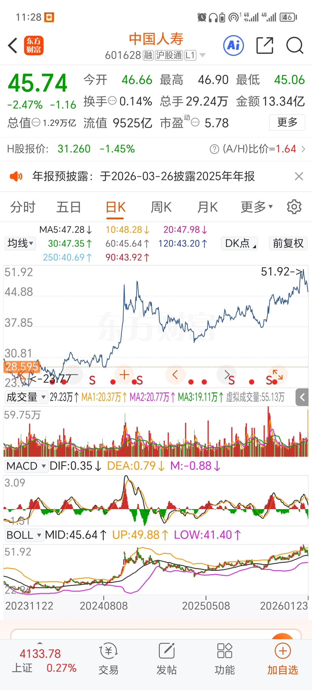 $中国人寿(SH601628)$ 跌到我的成本线,翻倍加仓