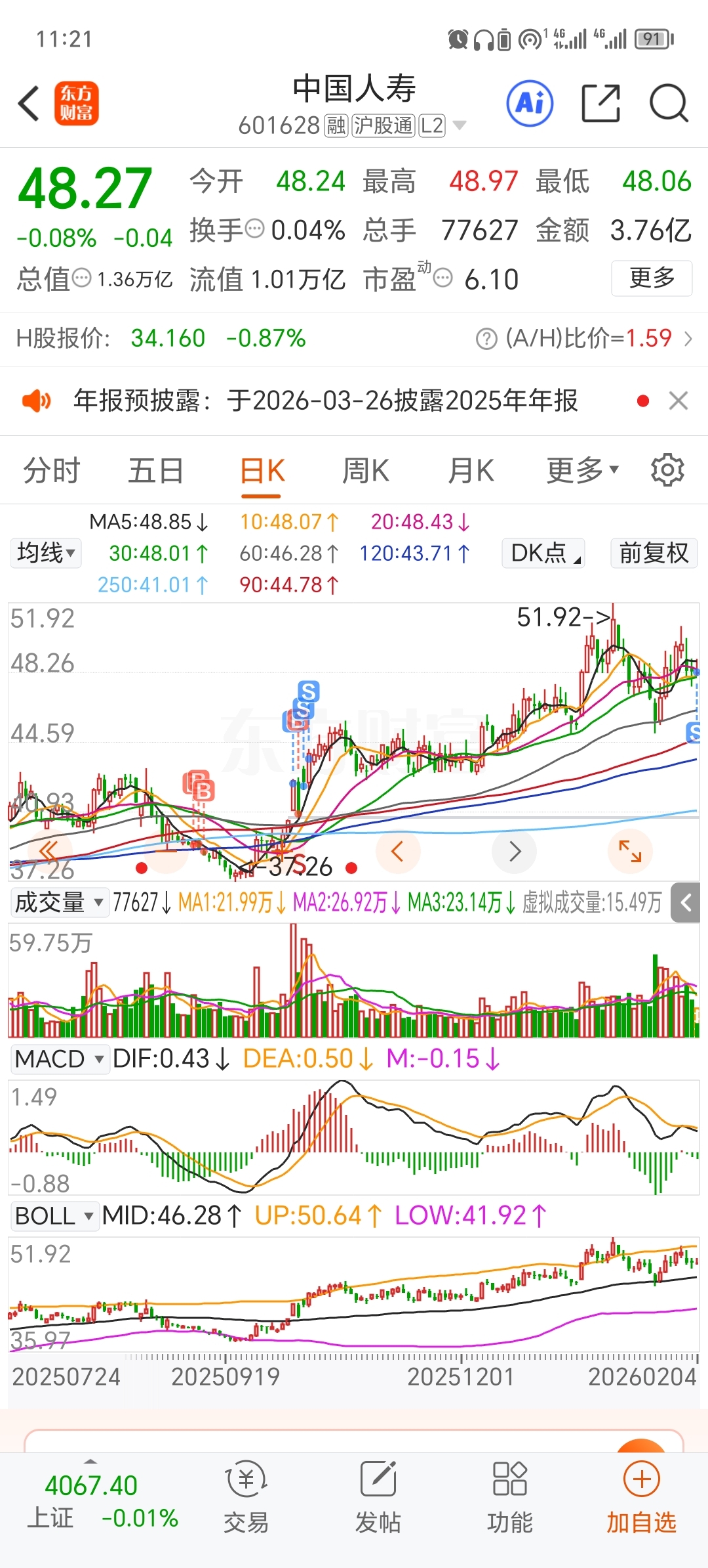 $中国人寿(SH601628)$ 新年挖坑再来!拜拜!