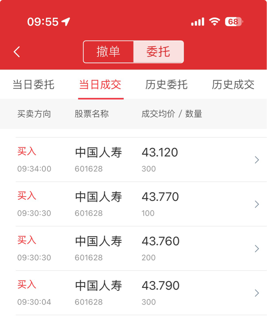 $中国人寿(SH601628)$ 骗我开盘买入,今天又吃大面喽