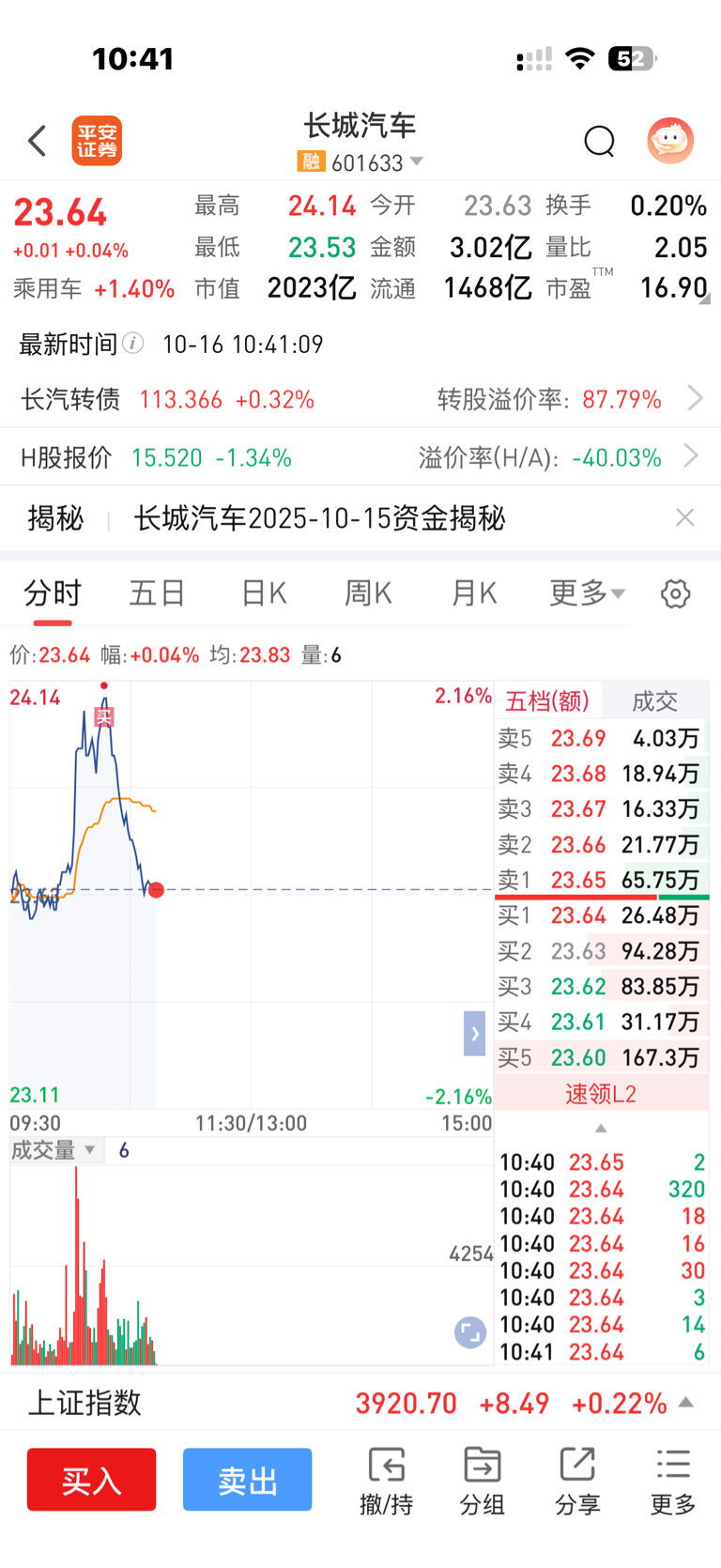 $长城汽车(SH601633)$ 第一次买就挂山顶了?