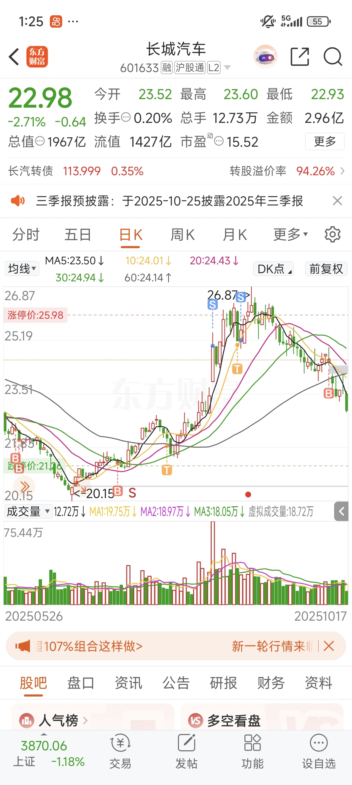 $长城汽车(SH601633)$ 什么玩意,进来就跌,真fw