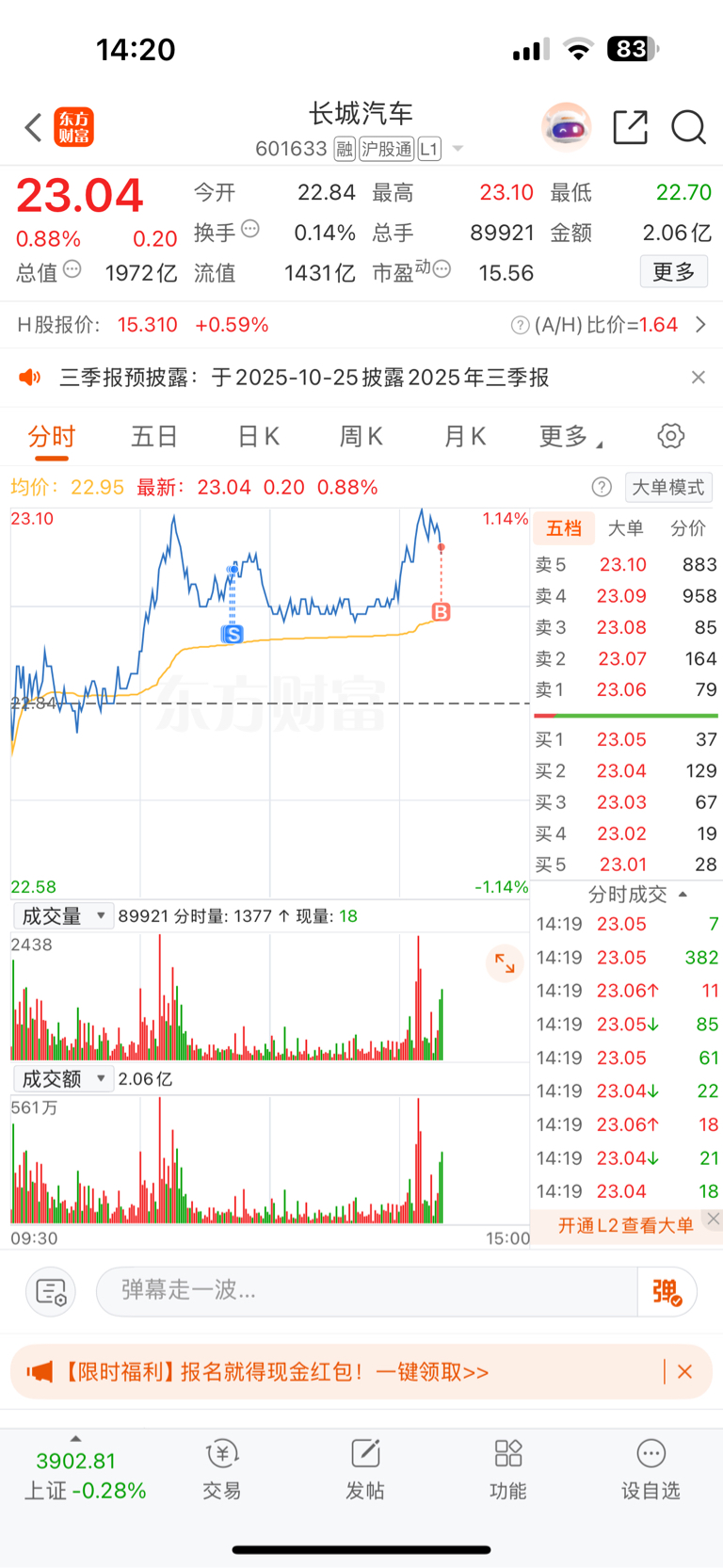 $长城汽车(SH601633)$ 今天做t贪心了没做好,浪费了个手续费600块钱