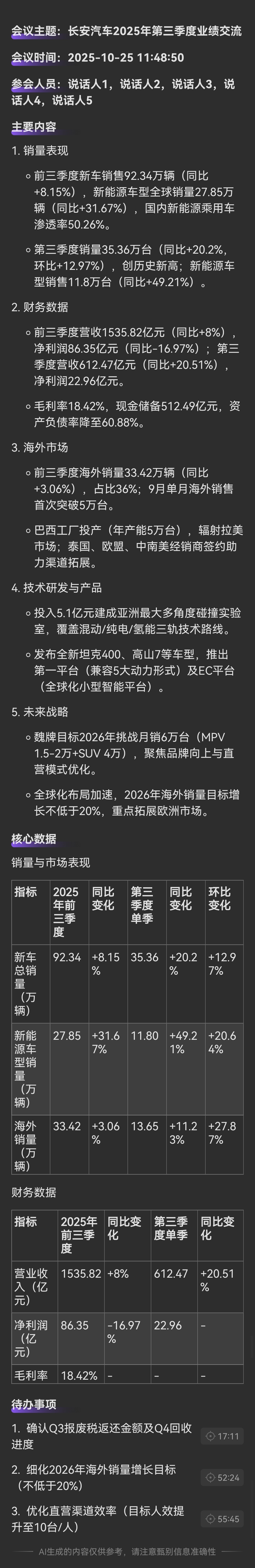 $长城汽车(SH601633)$ 三季度业绩说明会,AI翻译把长城弄成长安。国外电网、道路情况都难以支撑纯电。依托强大的中国制造,国产把丰田、本田、大众份额吃下,是必然。目前看只有比亚迪、奇瑞、长城靠谱,中国制造本身将会是品牌,一说长城汽车,老外就知道是中国产。这个buff无与伦比。