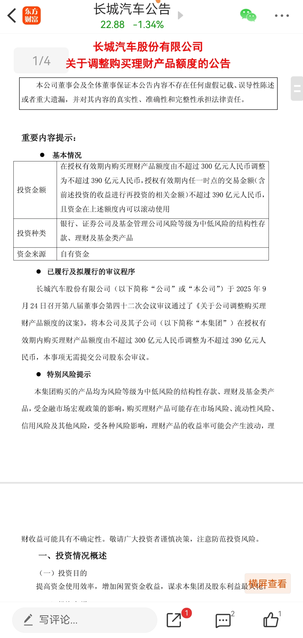 $长城汽车(SH601633)$ 魏总 自己公司的市值管理成什么样了,还追加了购买其它理财产品的投资额,我的天,我这到底是买了个什么玩意???