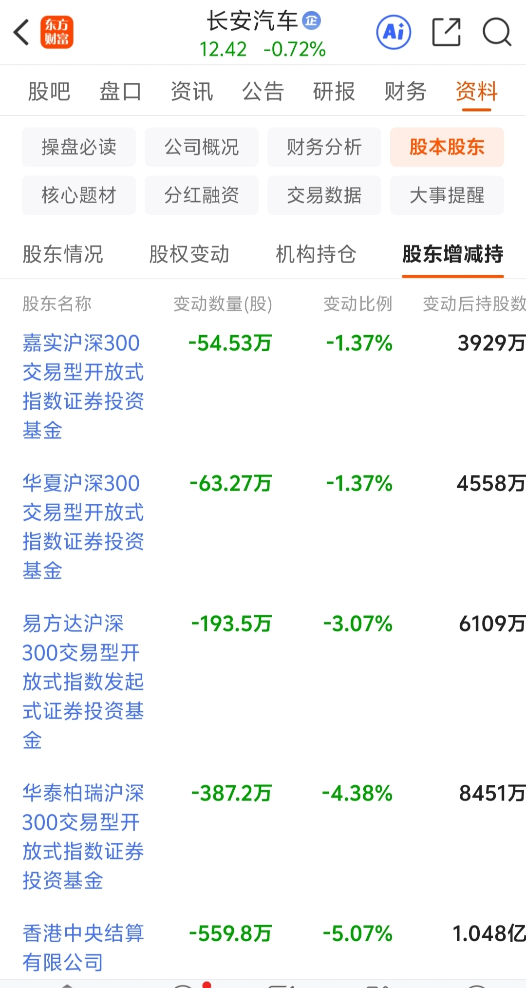 这个是长安汽车三季报机构增减仓情况,几个基金在减仓。