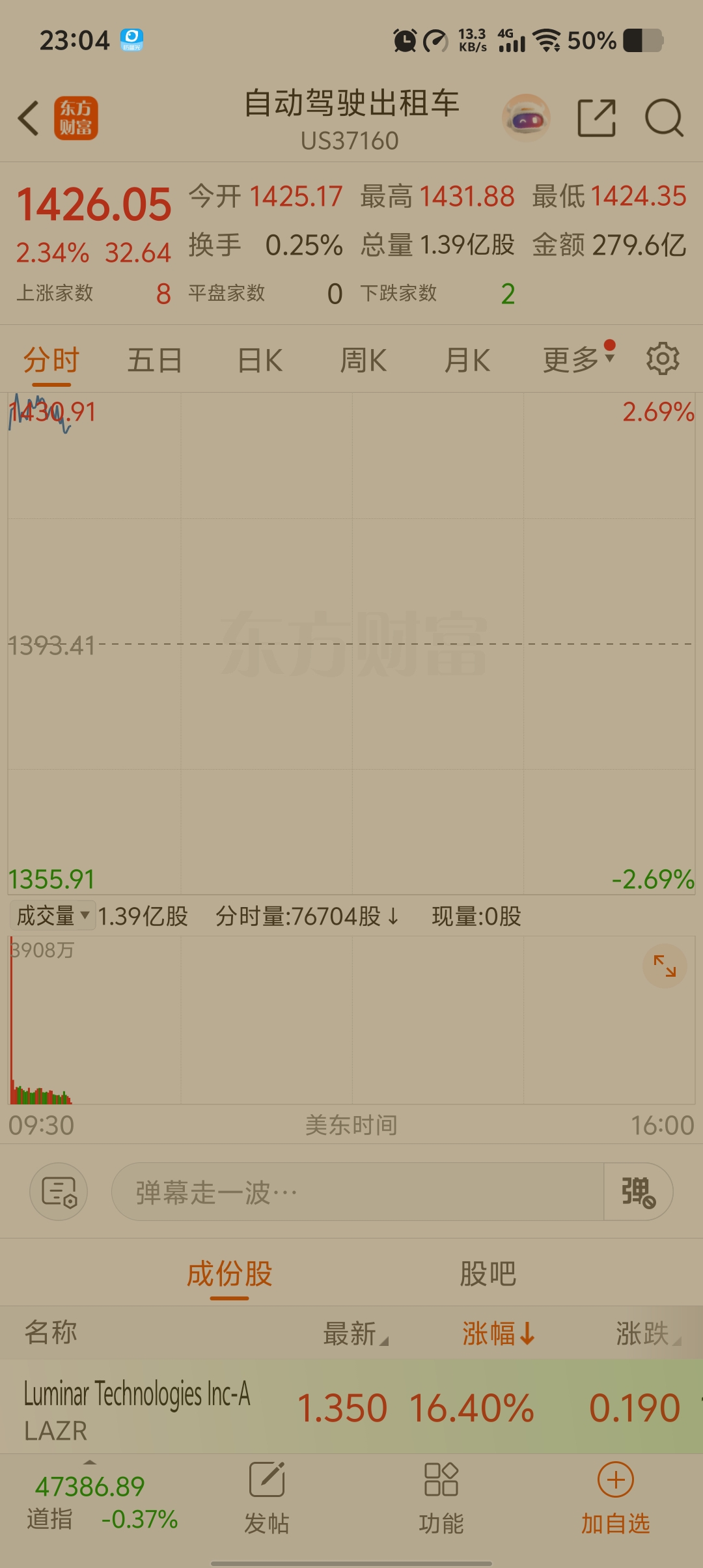 美国的无人驾驶板块长得还是不错的,明天应该能到乘用车了。没有只跌不涨的股票。