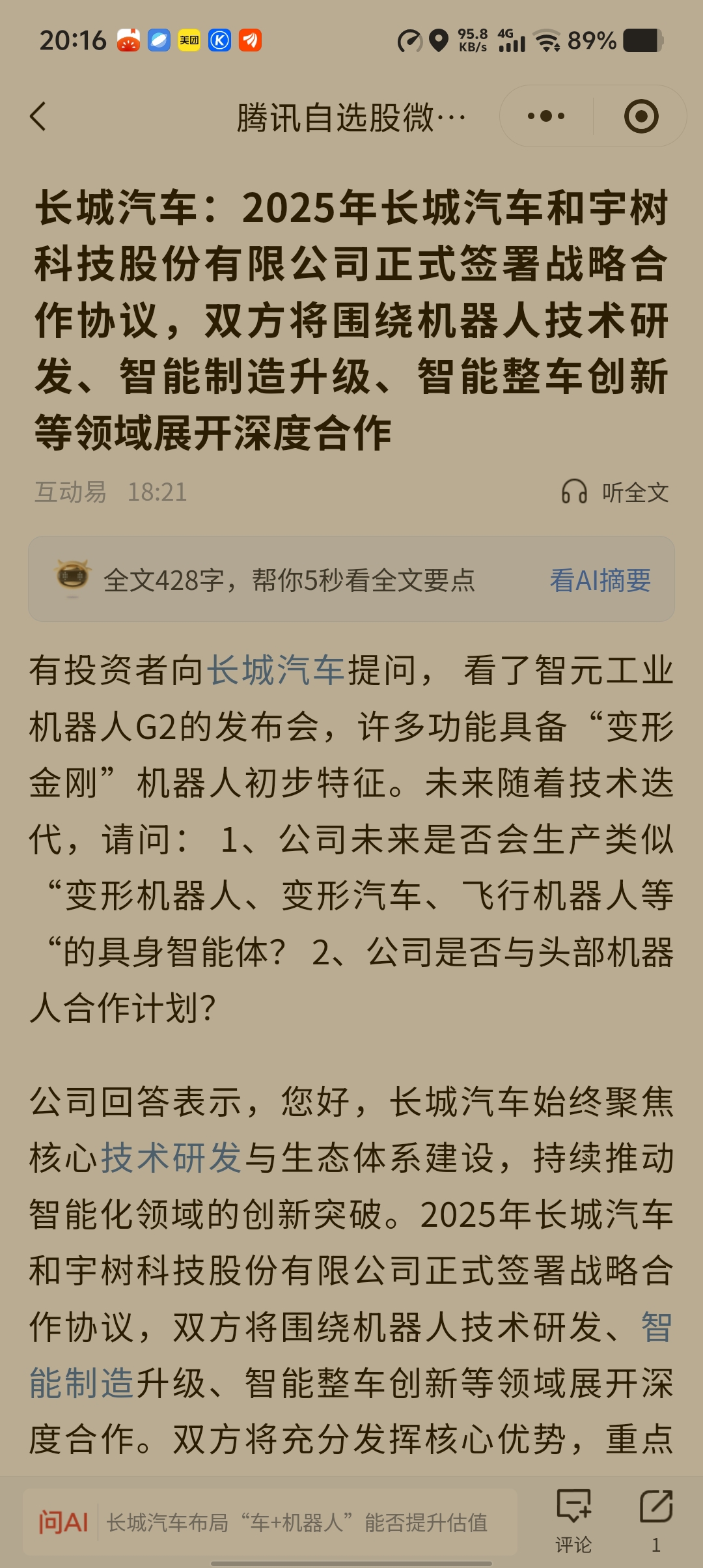 $长城汽车(SH601633)$ 没有利好就去问,呵呵。也不妨碍明天的绿盘。