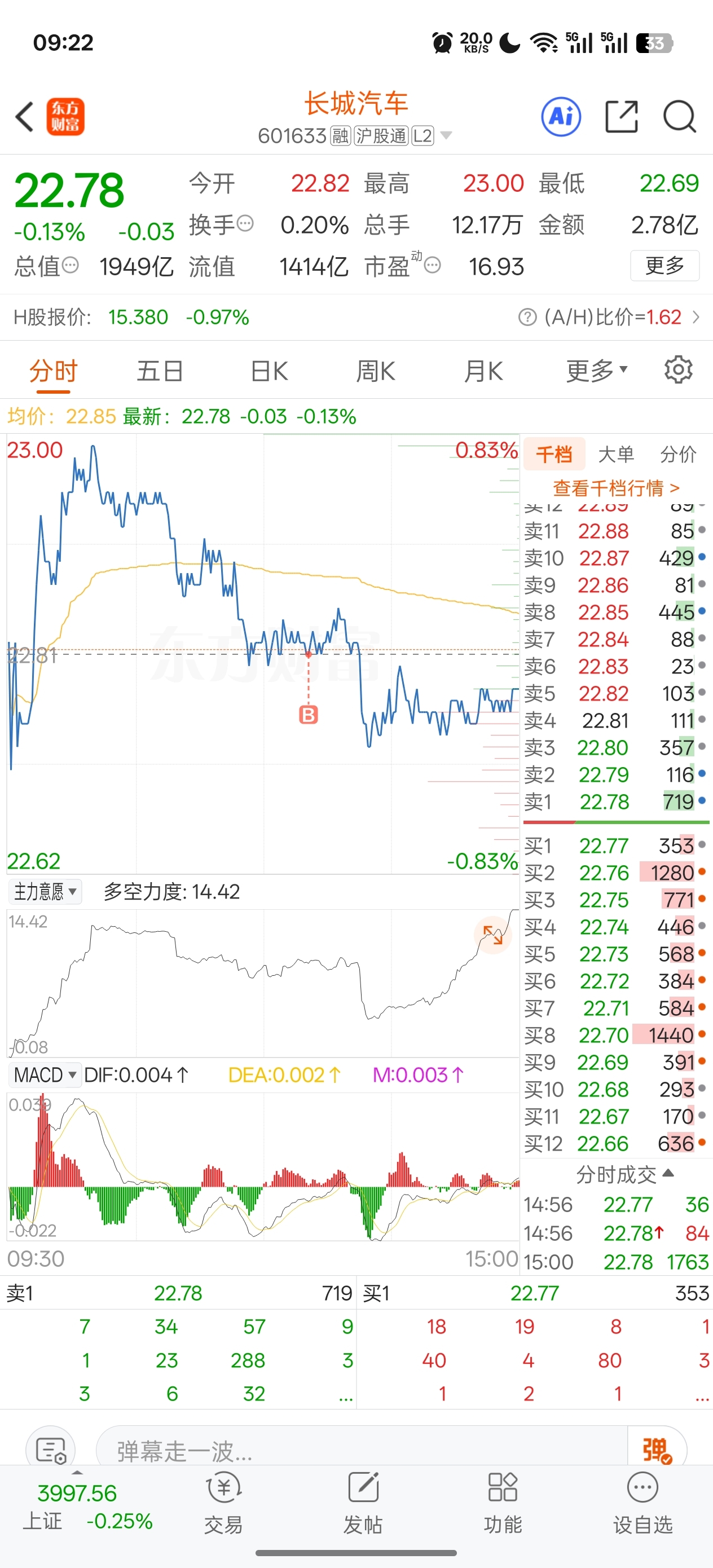 $长城汽车(SH601633)$ 上午点火没成功,被大盘拉下来了。支撑在0轴附近,本来主力要在0轴吸筹的,谁知道没人卖,就砸盘下来,清掉不稳定筹码,一路又吃回来