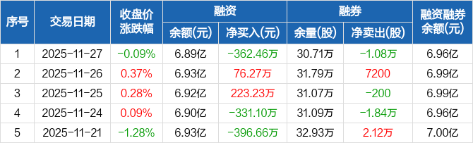 长城汽车:融资净偿还362.46万元,融资余额6.89亿元(11-27)
