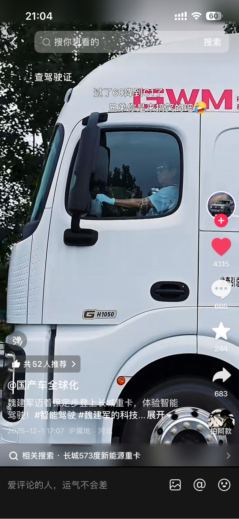 $长城汽车(SH601633)$ 老魏开着长城重卡,准备起飞