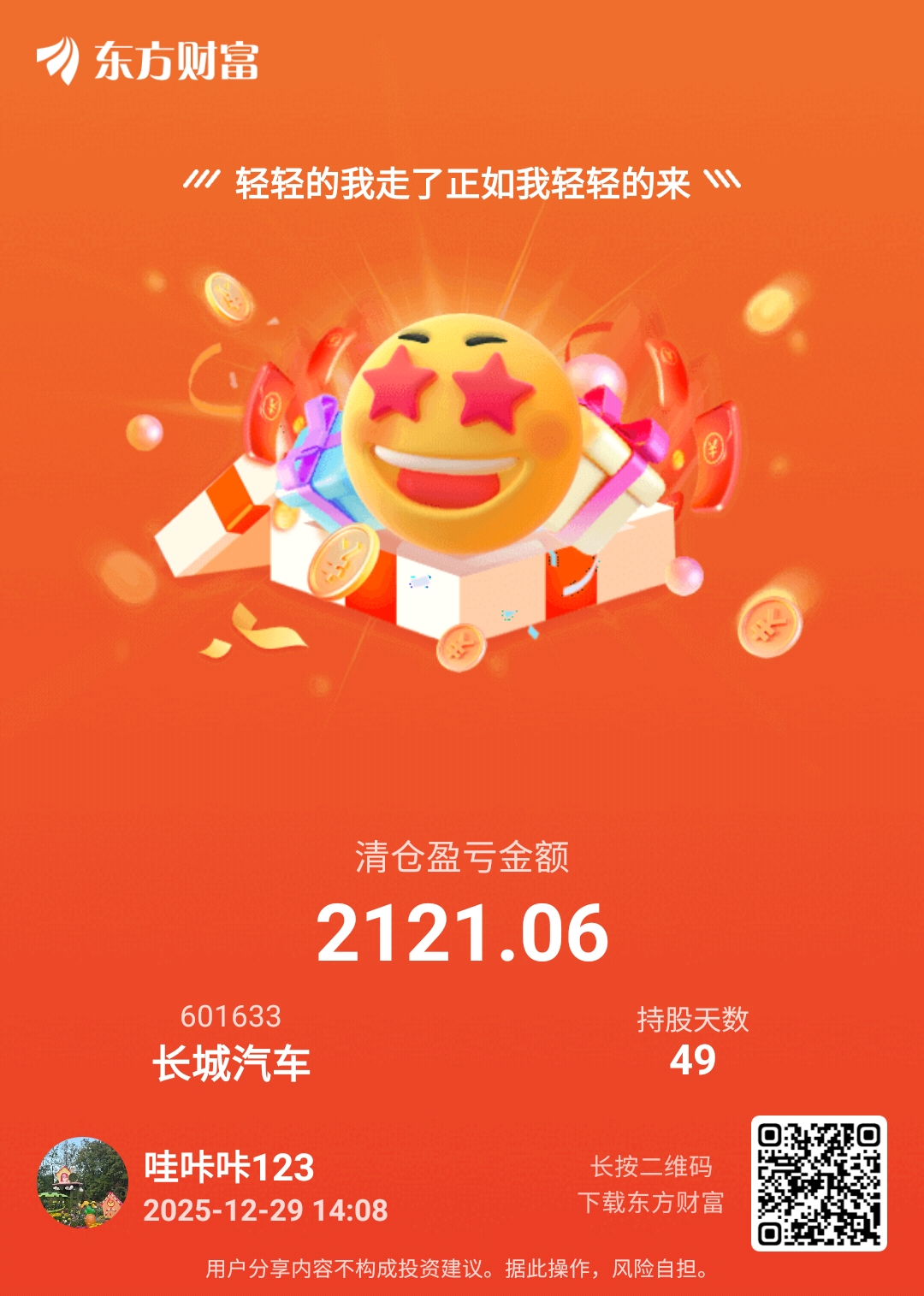 $长城汽车(SH601633)$ 走了 后面涨也与我无关了 熬不动了