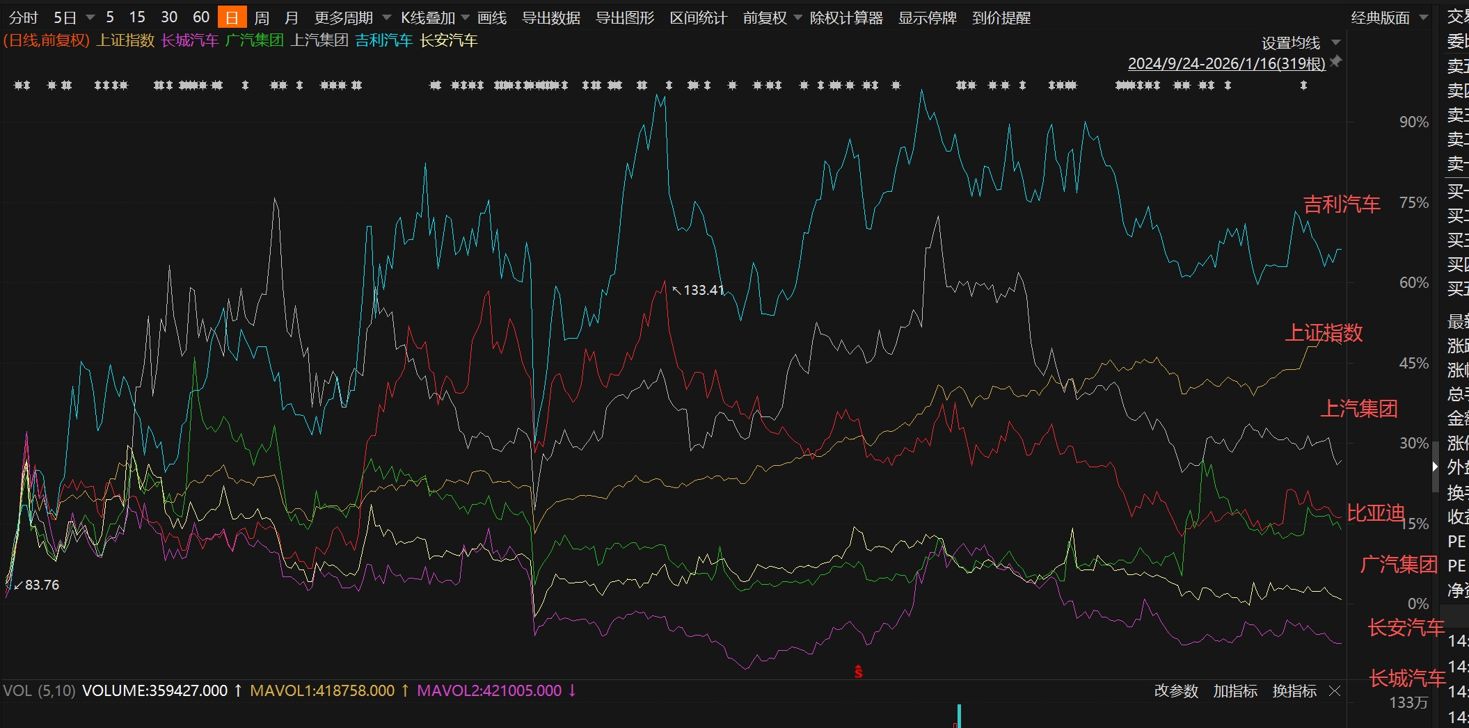 长城汽车,从20240924以来收益负数,远低于吉利的68%,上证指数的50%,