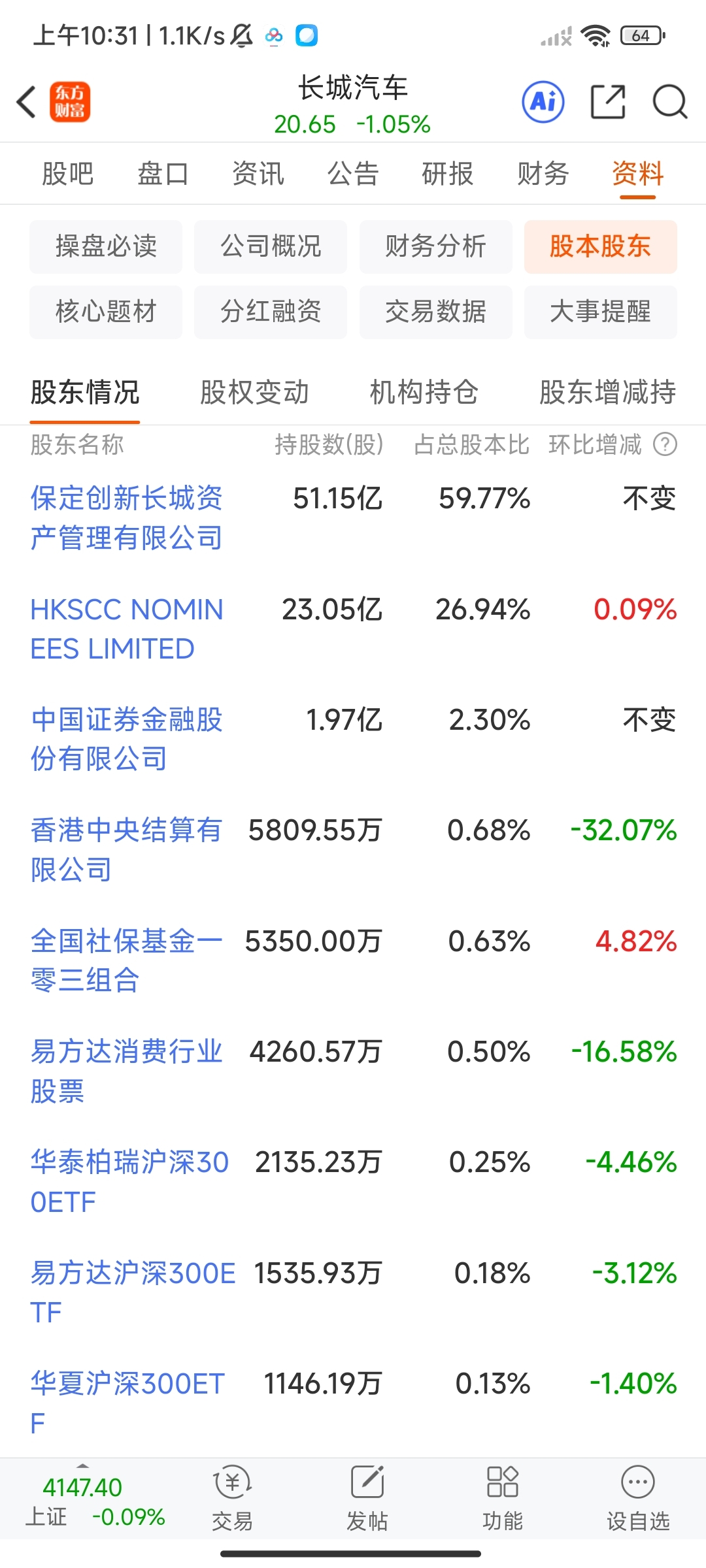 $长城汽车(SH601633)$ 收手吧,你们玩不过汪汪队的,都是大机构,小散户斗不过的,成本高的小散至少套好几年。外资港资都拿不住跑路了