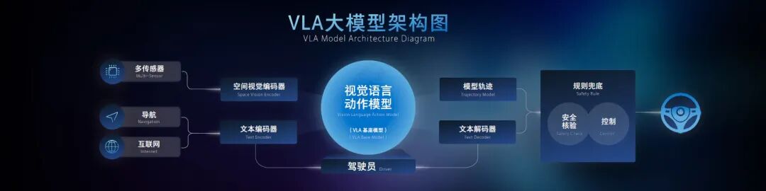 VLA辅助驾驶大模型则开启了智能驾驶的“认知时代”。与传统“数据驱动”的辅助驾驶系统不同,VLA通过视觉-语言融合实现“知识驱动”,既能“看到”路况,更能“理解”场景:遇到坑洼路面时,会自主判断坑洼大小与深度,选择减速或绕行;雨天行驶时,会根据雨水强度调整刹车距离与车速。