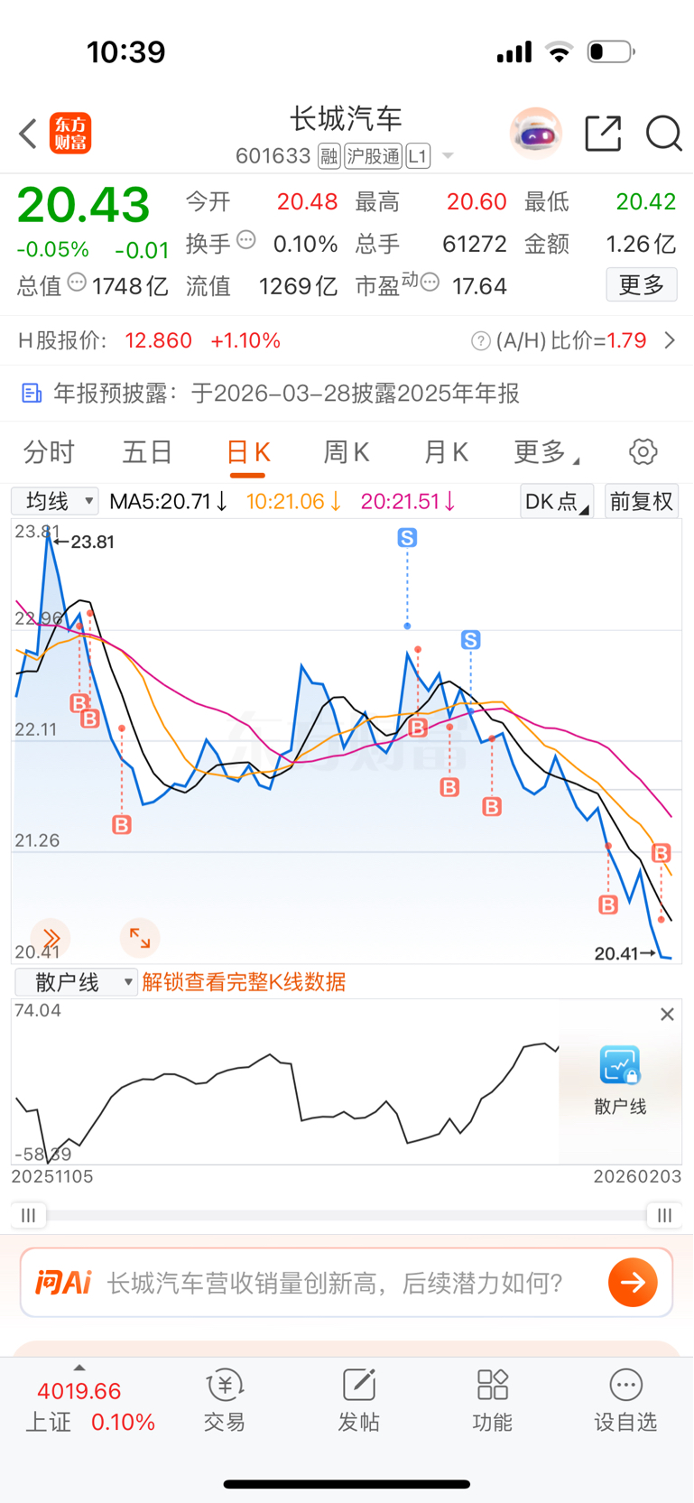 $长城汽车(SH601633)$ 狗皮膏药,就不走,我看你能跌到多少