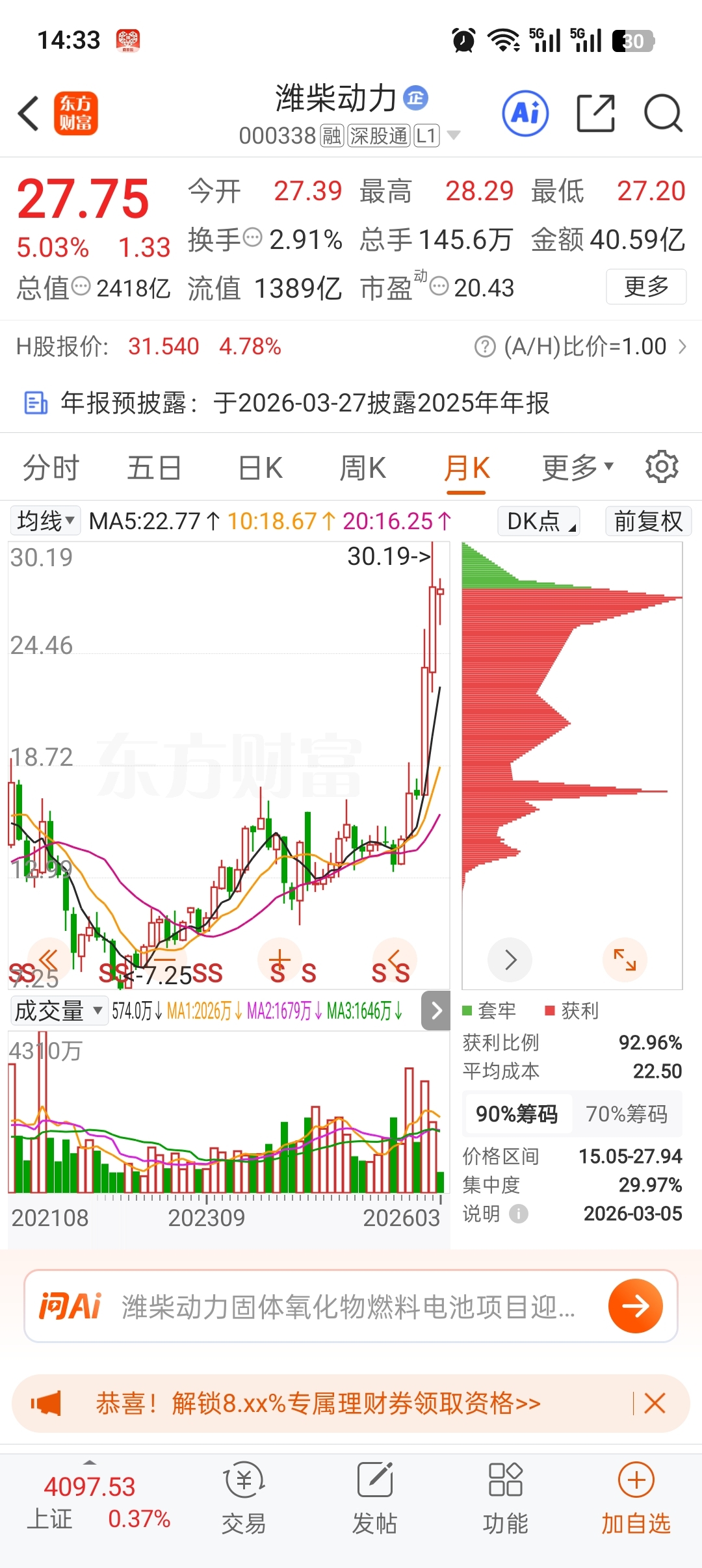 $长城汽车(SH601633)$ 看看潍柴动力K线,盘子,感觉长城像奥利给