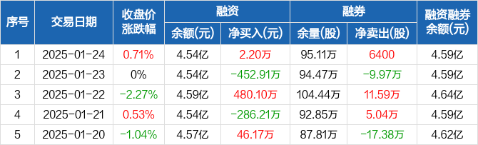 旗滨集团:融资净买入2.2万元,融资余额4.54亿元(01-24)