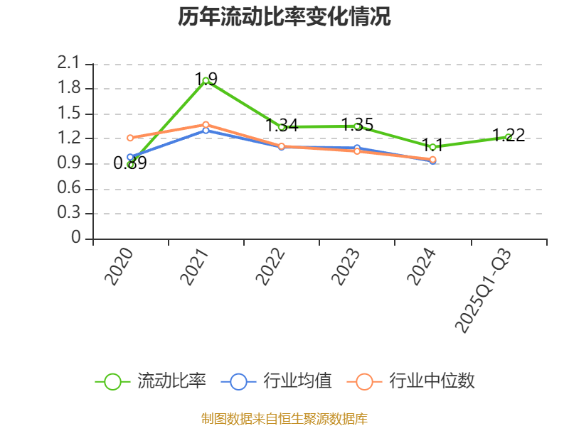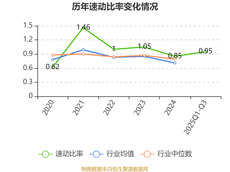 2025年前三季度,公司流动比率为1.22,速动比率为0.95。