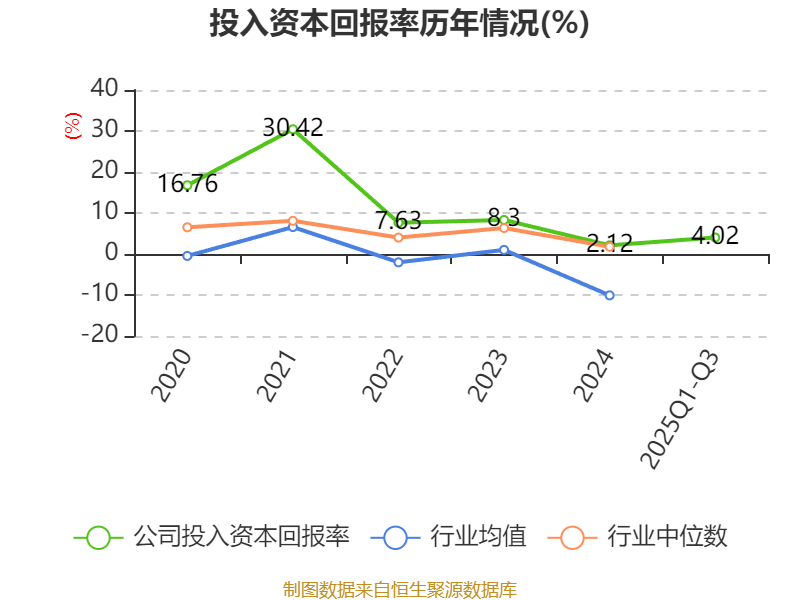 盈利能力方面, 2025年前三季度公司加权平均净资产收益率为6.7%,同比上升1.59个百分点。公司2025年前三季度投入资本回报率为4.02%,较上年同期上升0.8个百分点。