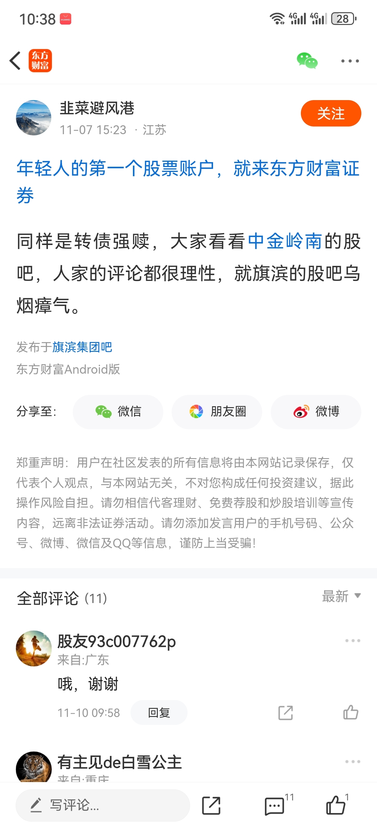 温馨提示: 1.根据《证券法》规定,禁止编造、传播虚假信息或者误导性信息,扰乱证券市场;2.用户在本社区发表的所有资料、言论等仅代表个人观点,与本网站立场无关,不对您构成任何投资建议。用户应基于自己的独立判断,自行决定证券投资并承担相应风险。《东方财富社区管理规定》