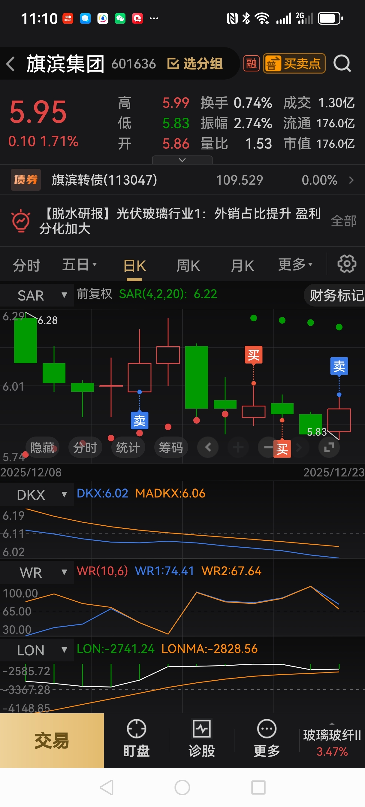 旗滨集团,12月23号,已清仓5.99(49*78*11)