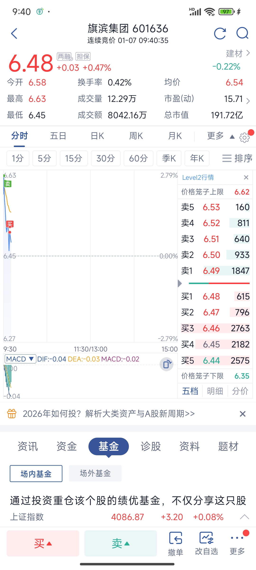 $旗滨集团(SH601636)$ 6.60再卖一半。6.46买会卖出的一半。全部剩余的都是利润了。不回调就这样拿着了。回调再回买。