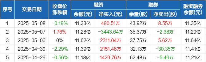 邮储银行:融资净买入490.51万元,融资余额11.33亿元(05-08)