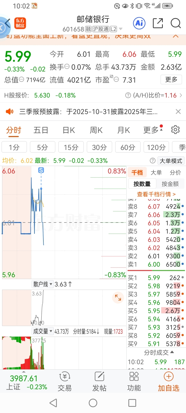 $邮储银行(SH601658)$ 就我这点量是我的问题吗