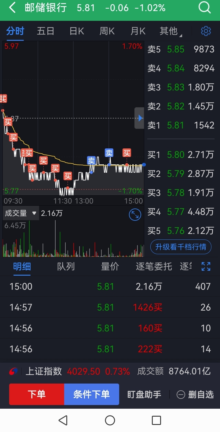 $邮储银行(SH601658)$ 还以为你会反弹,没想到我一买你又不动了