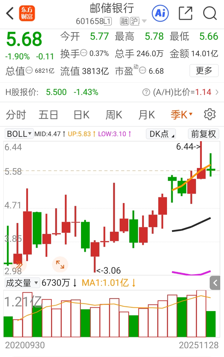 $邮储银行(SH601658)$ 感觉中期分红,如果放在次年1月份分,半年分红超过半年,和年终分红太近,意义不大。要不还是一年分一次红,要不每个季度分一次红。