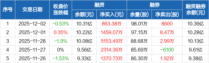 邮储银行:连续5日融资净买入累计1.12亿元(12-02)