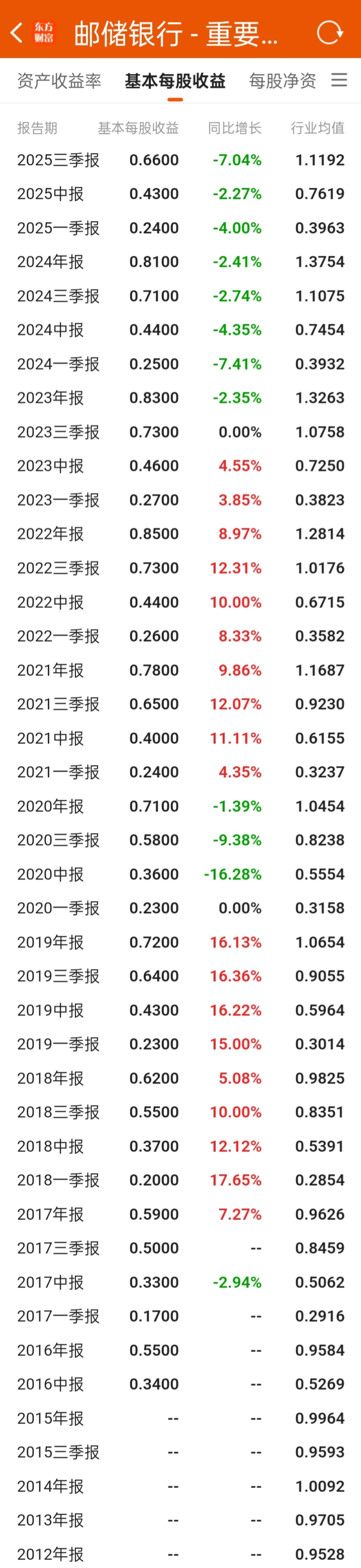 $邮储银行(SH601658)$ 基本每股收益率了好几个报告期了。增发后希望26年会有改善。