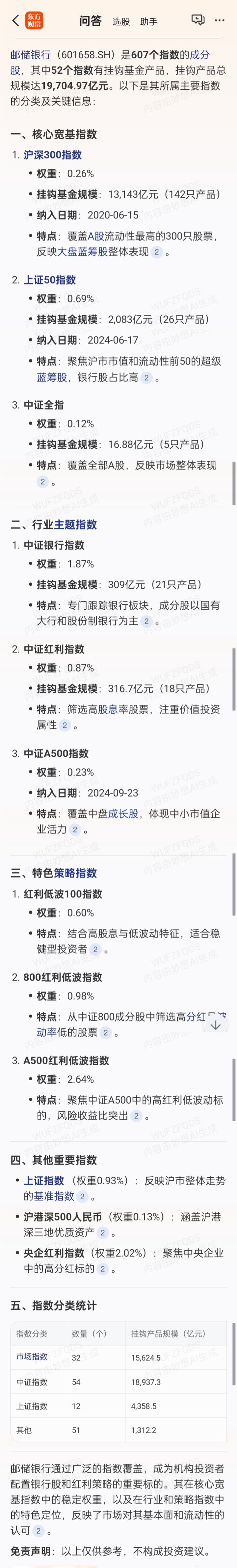 邮储银行是沪深300和红利低波100指数的成分股