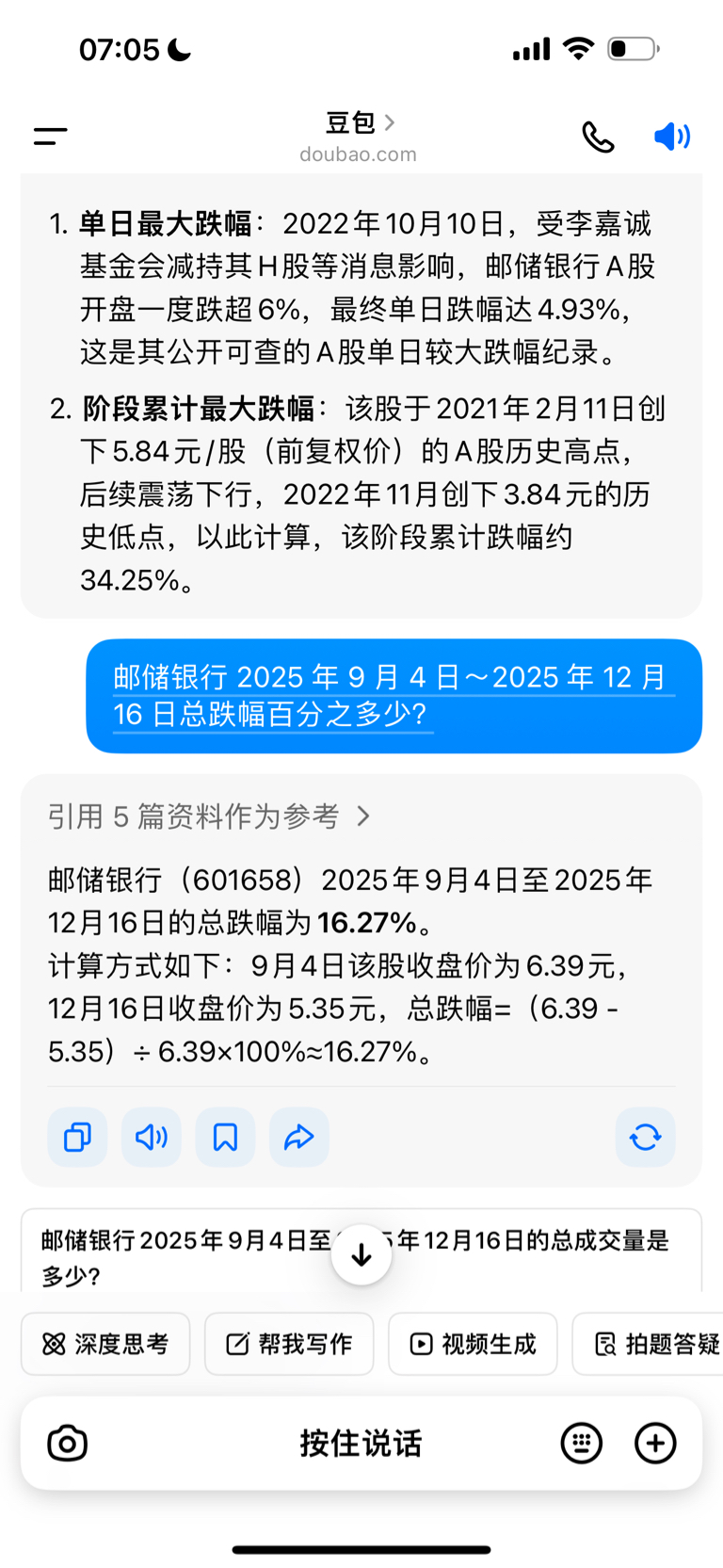 $邮储银行(SH601658)$ 历史最大跌幅34,目前9月4日至今最大跌幅才16,底在哪里,有底吗,认清历史,再决定