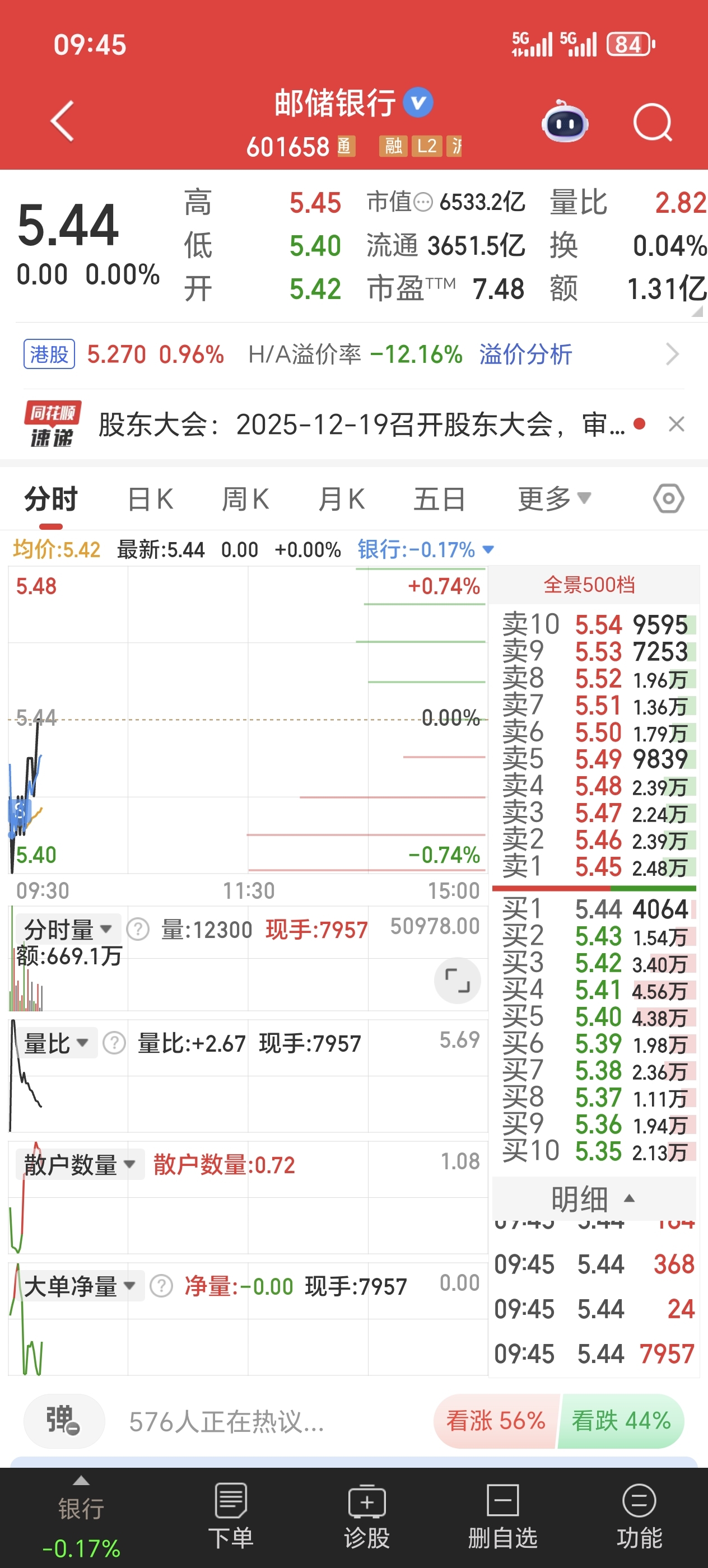 $邮储银行(SH601658)$ 想做个t,主力你就差我那700多手吗