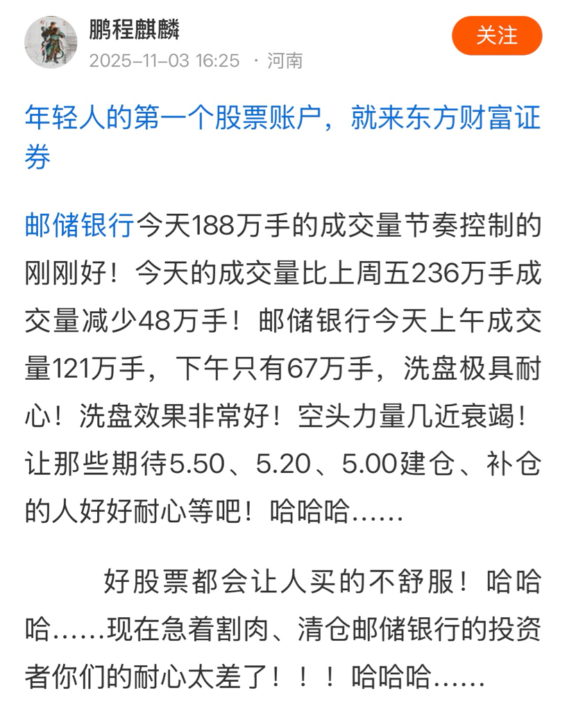 温馨提示: 1.根据《证券法》规定,禁止编造、传播虚假信息或者误导性信息,扰乱证券市场;2.用户在本社区发表的所有资料、言论等仅代表个人观点,与本网站立场无关,不对您构成任何投资建议。用户应基于自己的独立判断,自行决定证券投资并承担相应风险。《东方财富社区管理规定》