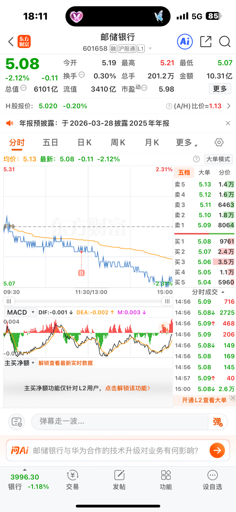 $邮储银行(SH601658)$ 每天不操作感觉损失几个一,手痒这下好了又套住了,回本无望