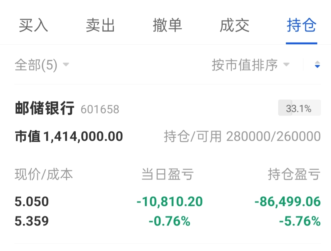 继续加,跌1个点加2w股,没办法!