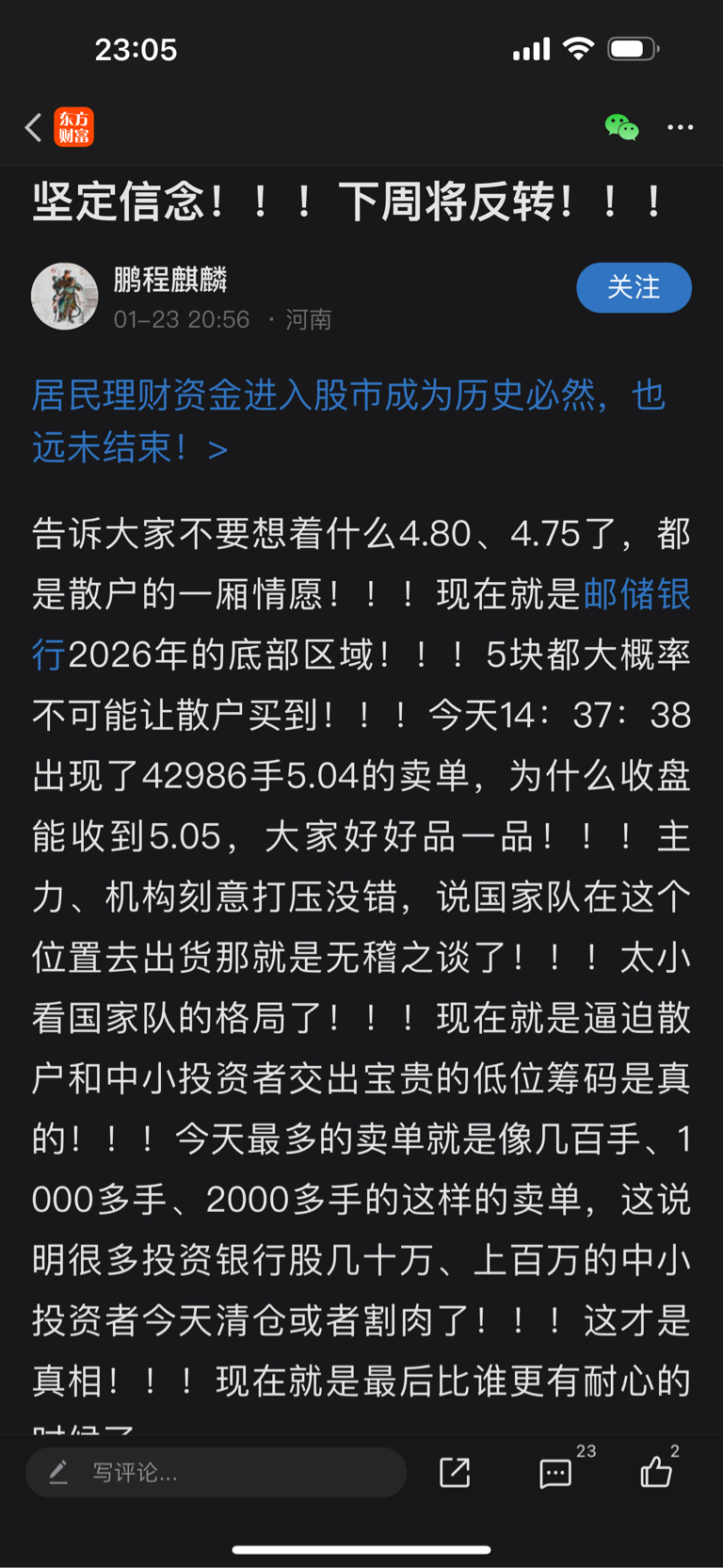$邮储银行(SH601658)$ 大家来看下马后炮大师