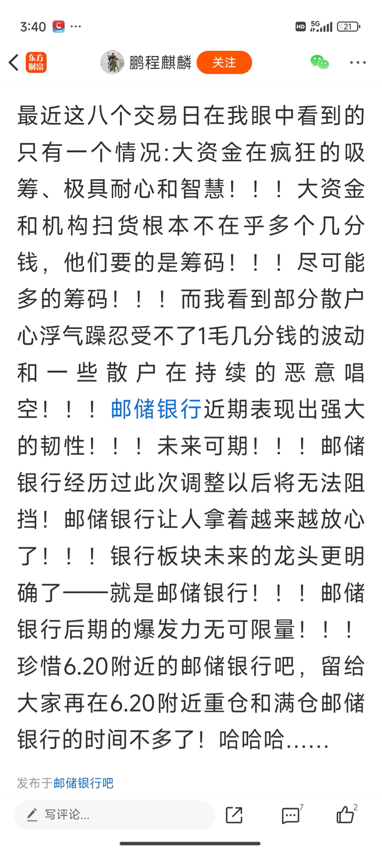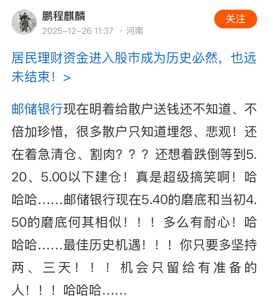 $邮储银行(SH601658)$ 继续膜拜鹏程麒麟鹏大神