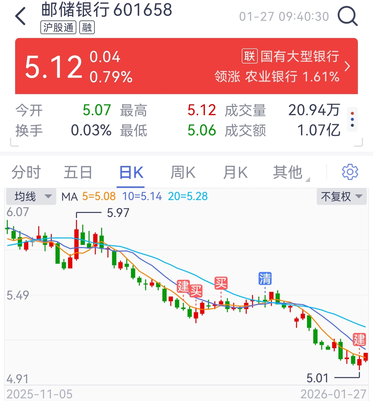 $邮储银行(SH601658)$ 我又回来了, 这次不会骗我了吧!