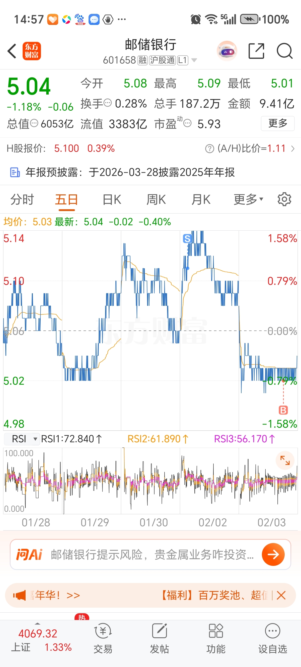 $邮储银行(SH601658)$ 搞回来,试试水。
