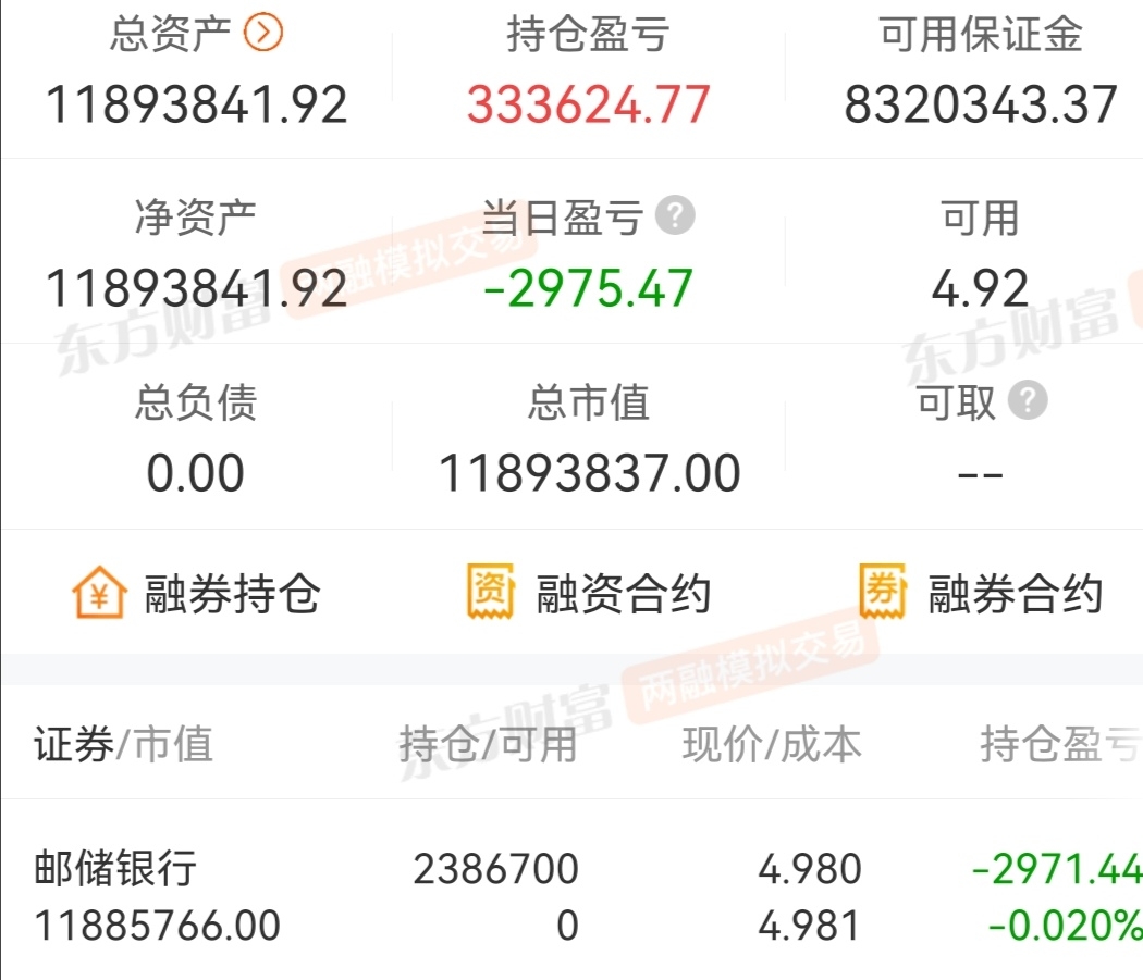 $邮储银行(SH601658)$ 银行股回调原因有三:一则近三年累计涨幅巨大机构需要兑现利润,二则趁机打压低位吸筹,为年报分红行情储备筹码,三则护盘需要(美国股市就像悬在空中的利刃,收割韭菜之心不死,一旦哪天落下,重心处于相对低位的银行股就是定海神针)。个人观点,仅供交流,若认为没有道理的忽略便是。个人觉得4.6~4.7是邮储中期极限调整价位。今天模拟买入,为后续实战积累感觉。