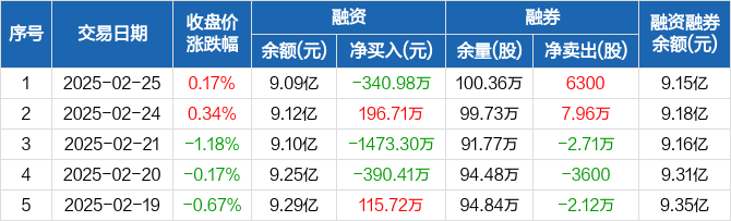 齐鲁银行:融资净偿还340.98万元,融资余额9.09亿元(02-25)